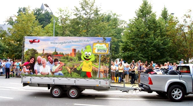 Das sächsische Großereigniss findet vom 6. bis zum 13. September statt. Die Stadt Großenhain ist mit 50 Vertretern vor Ort. Sie werden den STEMA-Anhänger zu Fuß im großen Festumzug begleiten und bereits für das Jahr 2014 werben. Dann findet das Event in hier in der "Stadt mit den vielen Anhängern" statt und neben PKW-Anhängern, Motorrad- und Autotransportern wird Großenhain sicherlich mit vielen Überraschungen für seine Gäste aufwarten.