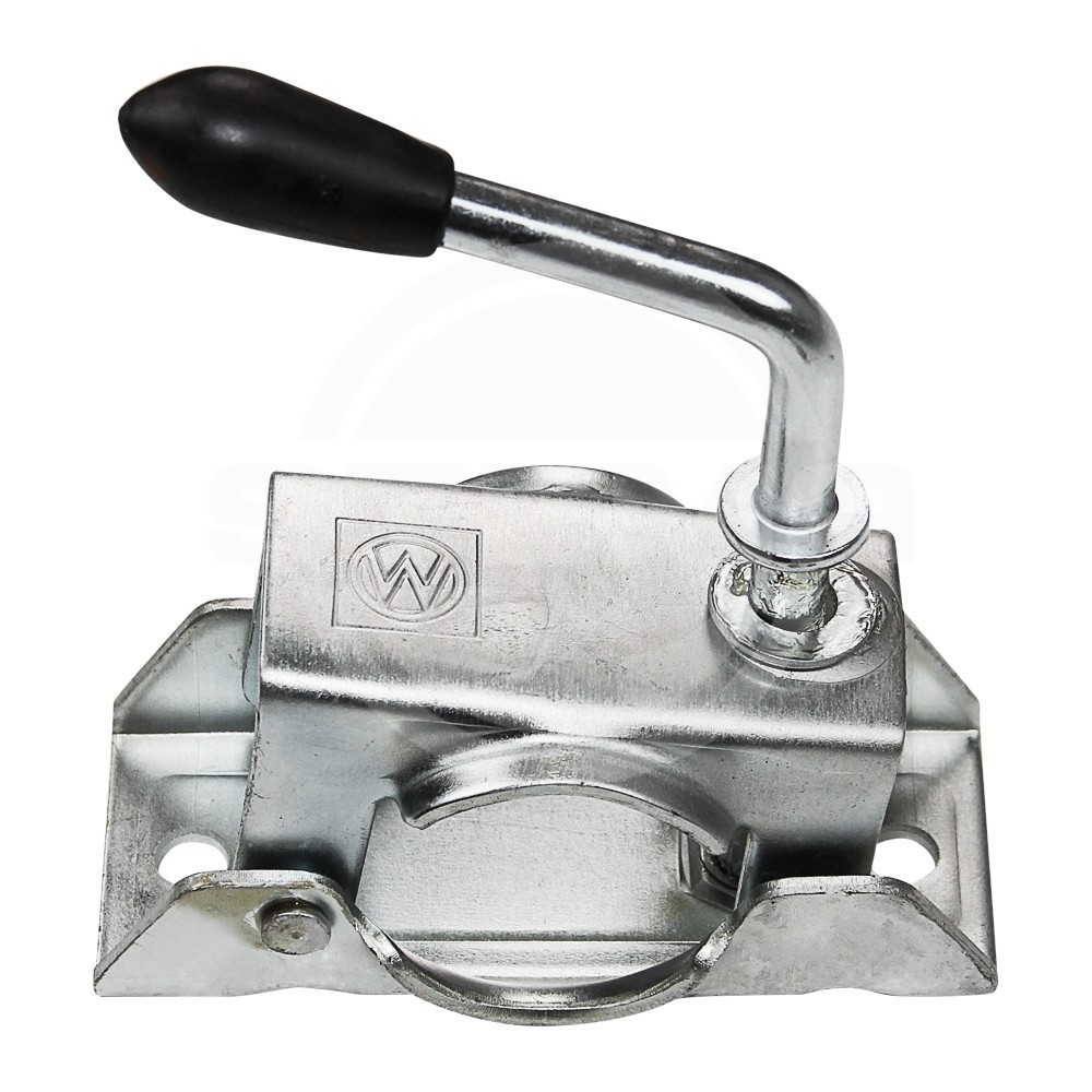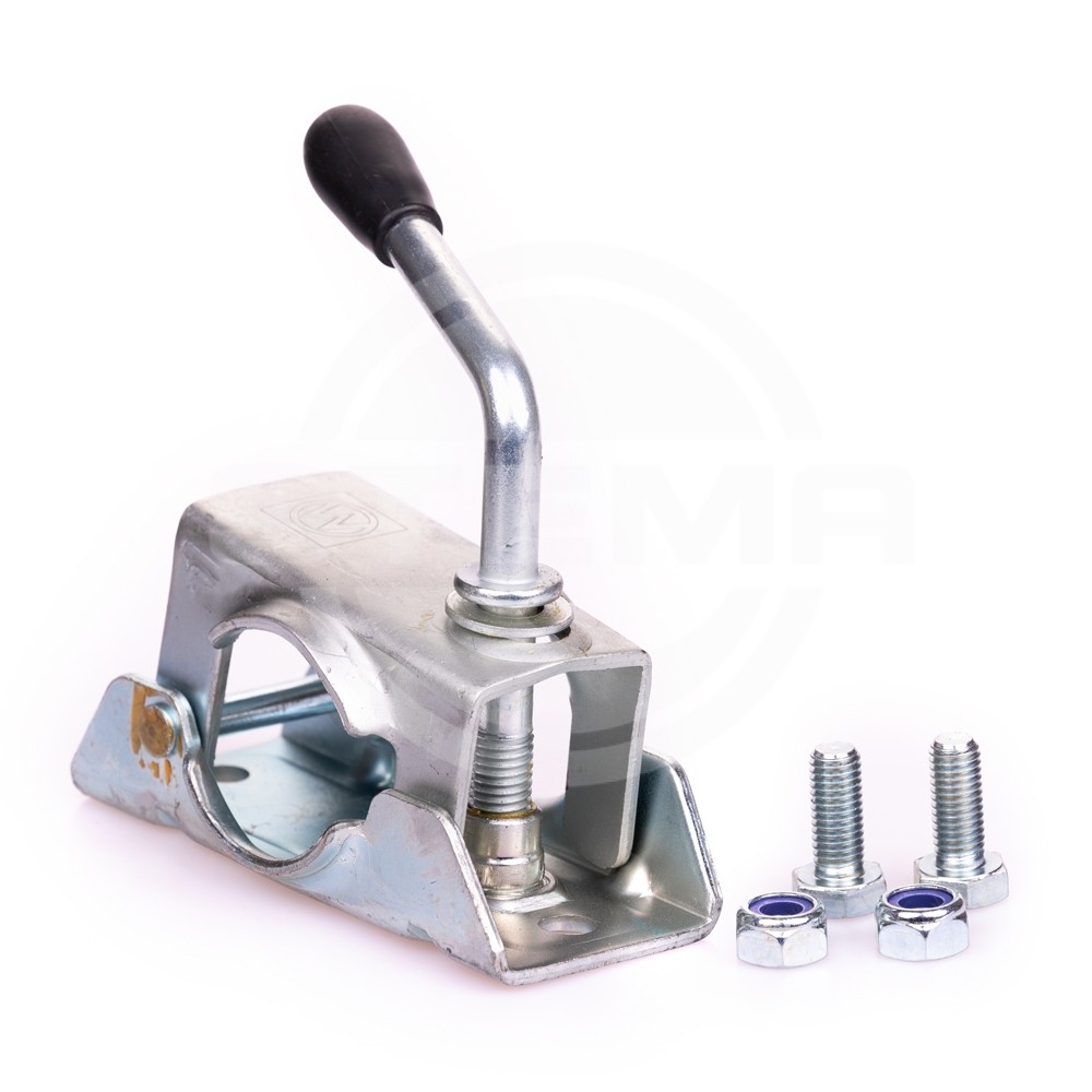 Die abgebildete Klemmschelle aus verzinktem Stahl ist für ein Stützrad oder einer Abstellstütze geeignet. Der Lochabstand auf der Grundplatte für LB 48 beträgt 105 mm. Die passende Feststellschraube, ist mit einem Gummischutz versehen und stufenlos einstellbar. Die verzinkte Klemmschelle LB 60 ist für ein Stützrad mit einem Rohrdurchmesser von 60 mm geeignet. Im Lieferumfang sind je nach Ausführung alle benötigten Normteile enthalten.