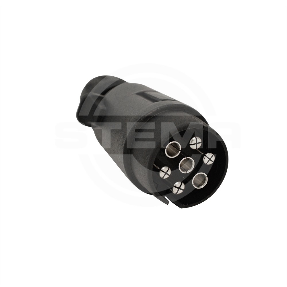 Der Kupplungsstecker mit schwarzem Kunststoffgehäuse besitzt 7 Pole zum stecken. Die Gummitülle gewährleistet, dass keine Feuchtigkeit in den Stecker eindringen kann.