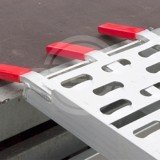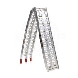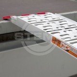 Die universale Auffahrrampe aus Aluminium dient zum Auffahren z. B. eines Motorrades auf Ihrem Anhänger und kann mit bis zu 340 kg belastet werden. Mit nur 7,3 kg Eigengewicht lässt sich die Rampe einfach auf eine Länge von nur 117,5 cm zusammenklappen und kann so platzsparend verstaut werden. Sie misst im ausgeklappten Zustand eine Gesamtlänge von 225 cm und eine Breite von 31 cm.