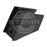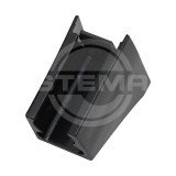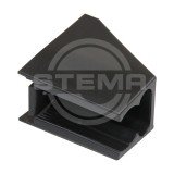 Das Set beinhaltet eine Rohrschelle aus schwarzem Kunststoff zum Einstecken der Querstrebe und des Längsverbinders beim Hochspriegel.