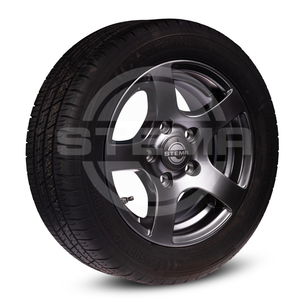 Das Komplettrad mit 5-Loch-Alufelge ist ein optisches Highlight für Ihren Anhänger. Im Lieferumfang enthalten sind die Radbolzen und der STEMA Nabendeckel.