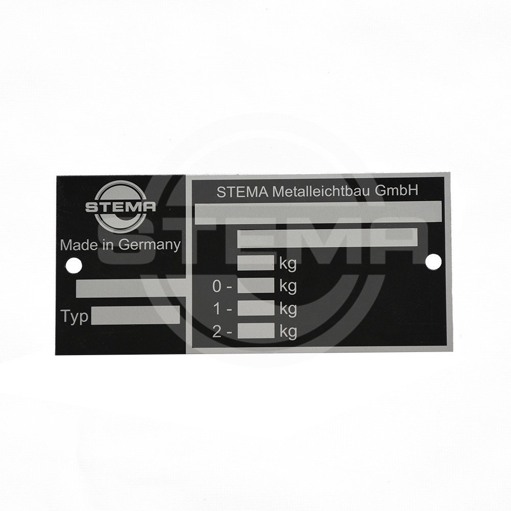 Sollte es sich um einen Verlust des Typschildes handeln, reichen Sie bitte per E-Mail (zubehoer@stema.de) eine eidesstattliche Erklärung über dessen Verlust mit einer Kopie des Fahrzeugscheines bzw. -briefes nach.
