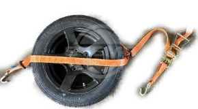 Der orangefarbene Autotransportgurt mit einer Länge von 2,8 m ist für sämtliche Radgrößen, Alu- und Stahlfelgen geeignet, um einen Pkw auf einem Transporter zu verzurren. Die Zugkraft beträgt im geraden Zug 1500 daN. Der Gurt wird über das Rad gespannt, sodass Sie keine Felgen beschädigen oder zerkratzen.