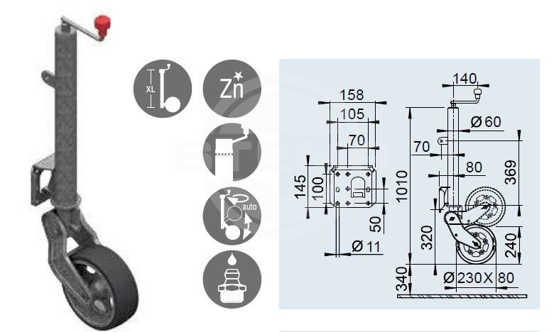 | BMAT O2 35-30-16.2 with central tube and ball head coupling | 3500 kg | 301 ×