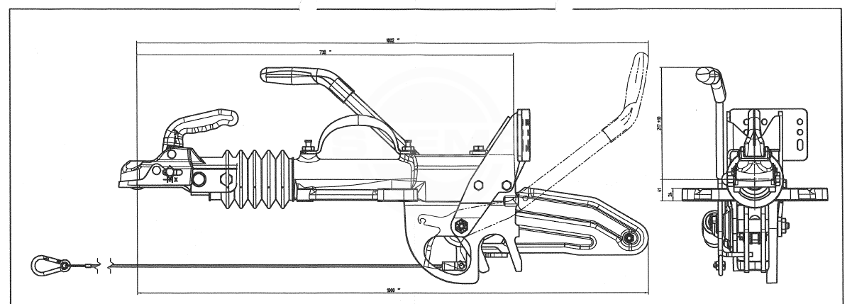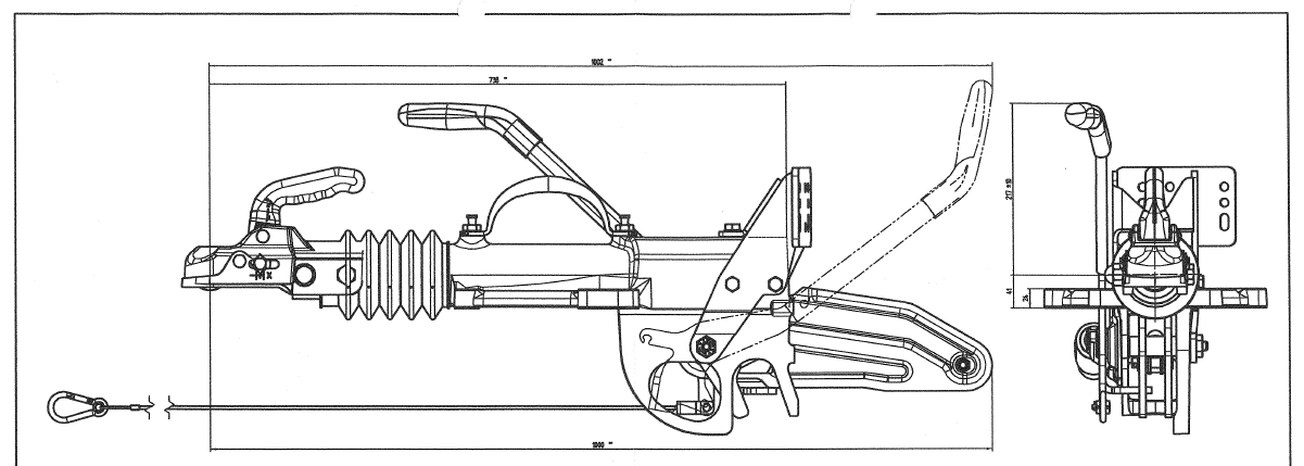 The overrun device serves as a replacement. It is delivered complete with coupling, bellows, hand brake lever and shock absorbers for easy replacement.