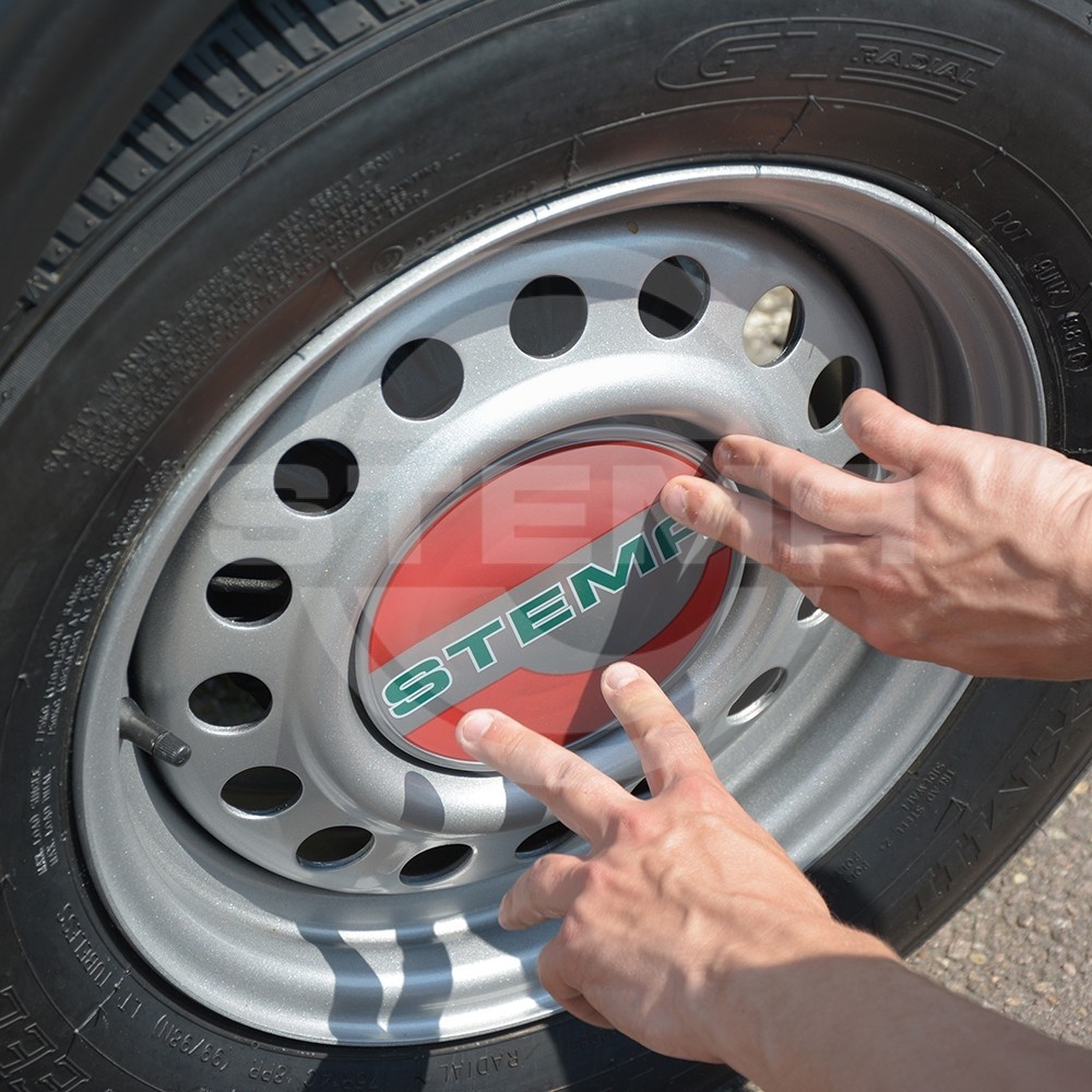 The set consists of two attachable wheel trims that bear the STEMA logo. The hubcaps are made of PVC.