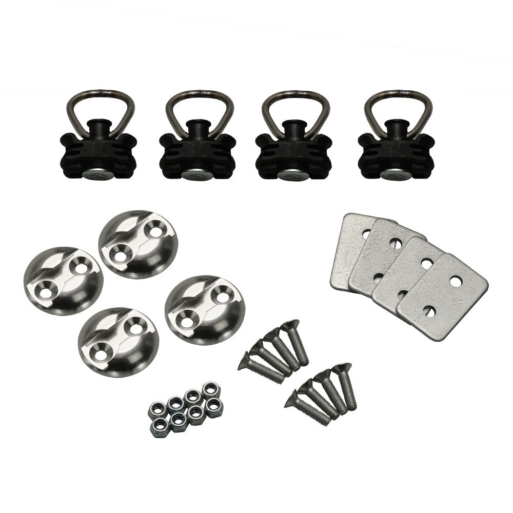 With the lashing set, you have the possibility to mount a lashing point on the desired spot within minutes. The set contains 4 lashing plates Arline S-Line of aluminium, as well as the matching steel fittings with 300 daN (Light-Set) or steel-plastic fittings bzw. Stahl-with 500 daN (Pro-Set) load-bearing capacity.