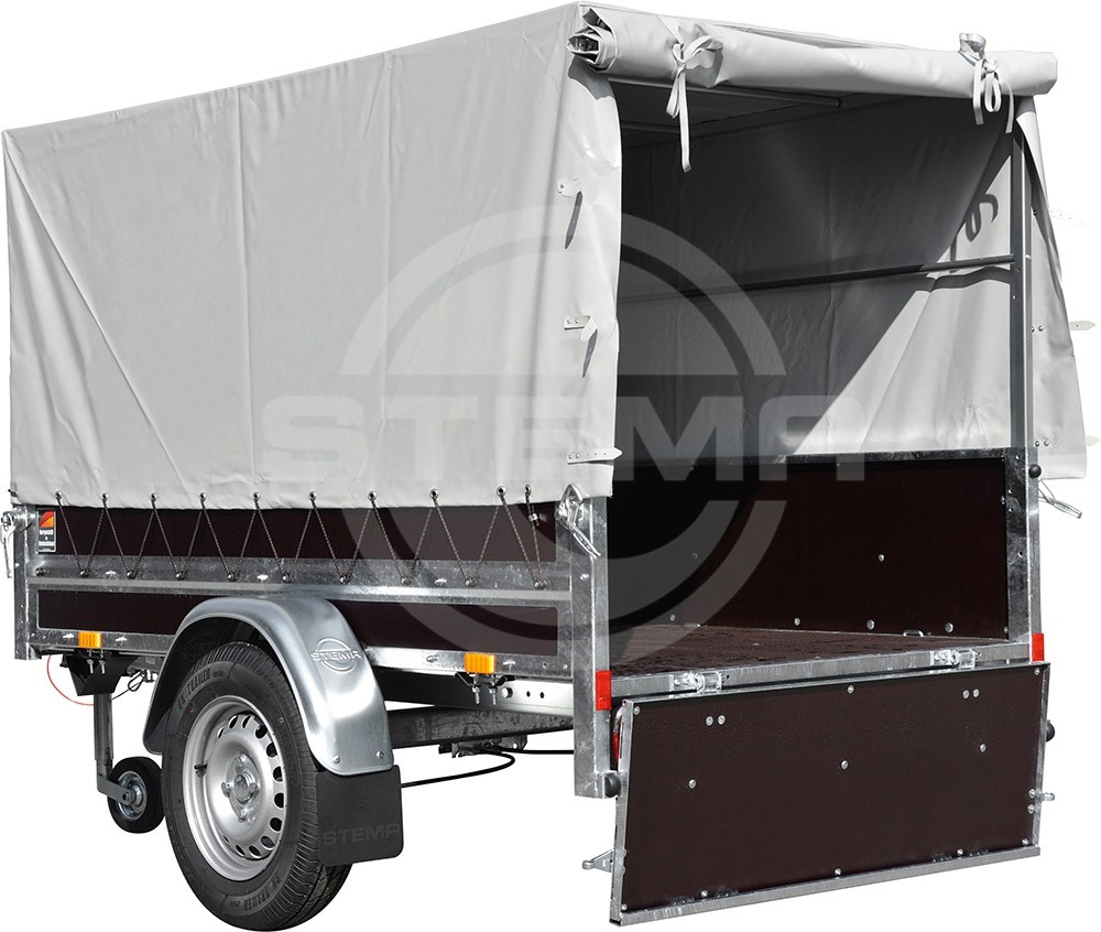 The perfectly sized, matching base (high frame) is also manufactured at STEMA. The mounting is done in the box corners of your car trailer.