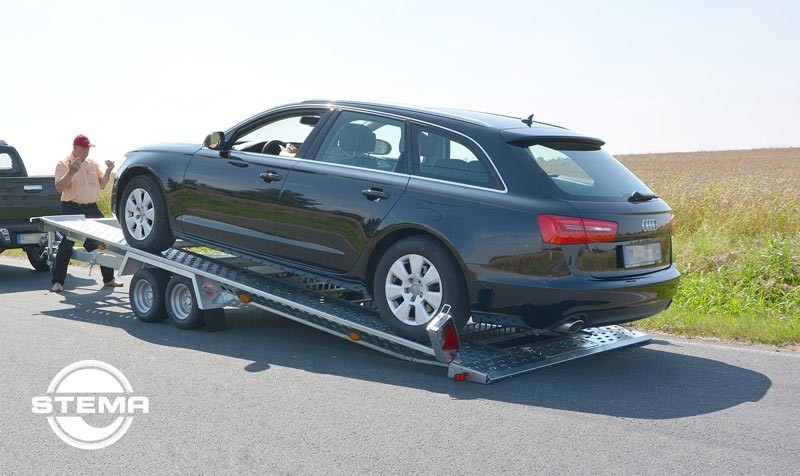 Die kurzen ATOUR 1 & 2 sind dennoch interessant, denn ihre Maße machen sie wendig und für den sicheren Verladevorgang haben sich die STEMA-Konstrukteure einen extra "Kniff" - eine Doppelsicherung der Auffahrschienen - einfallen lassen. So bleiben die Rampen auch während des Kippvorgangs sicher in ihrer Verankerung.
