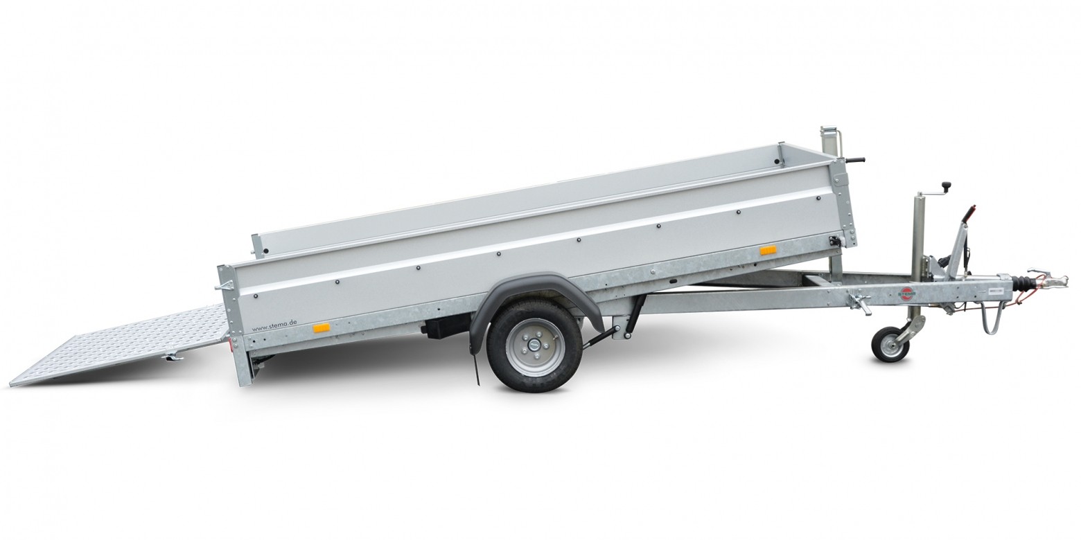 Die lange Rückwand dient als stabile Auffahrrampe. Durch das Betätigen der Teleskopkurbel wird die Kippbrücke in gewünschte Position gebracht.