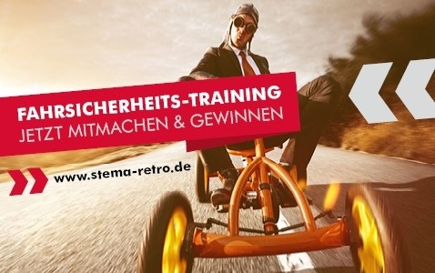 Was ist Ihre Meinung zum „STEMA RETRO“? Machen Sie mit bei unserer Marktstudie und gewinnen Sie ein Fahrsicherheitstraining im Wert von 500 Euro inklusive Übernachtung! Hier geht’s zur Umfrage: www.stema-retro.de