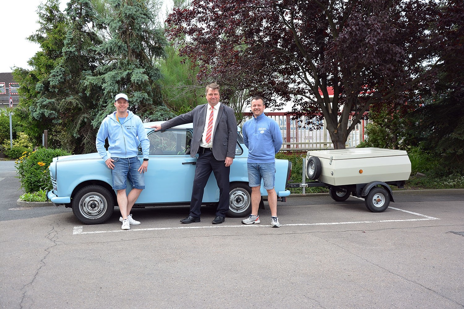 Wir haben von Eurem neuen Anhänger STEMA RETRO gehört und dachten, wir besuchen Euch mal.“, so Lemnitzer. Spontan fliegen Trabi-Anekdoten und Erinnerungen hin und her und das eine oder andere liebevolle Mitarbeiterlächeln hängt an dem bunten Fahrzeug-Mix auf dem STEMA Hof. Dem totalen Preisverfall nach der Wende ausgeliefert, sind die verbliebenen Stücke eine Rarität und steigen ständig im Wert. Noch circa 30.000 Modelle sind zugelassen können bis zu 10.000 Euro gehandelt werden.
