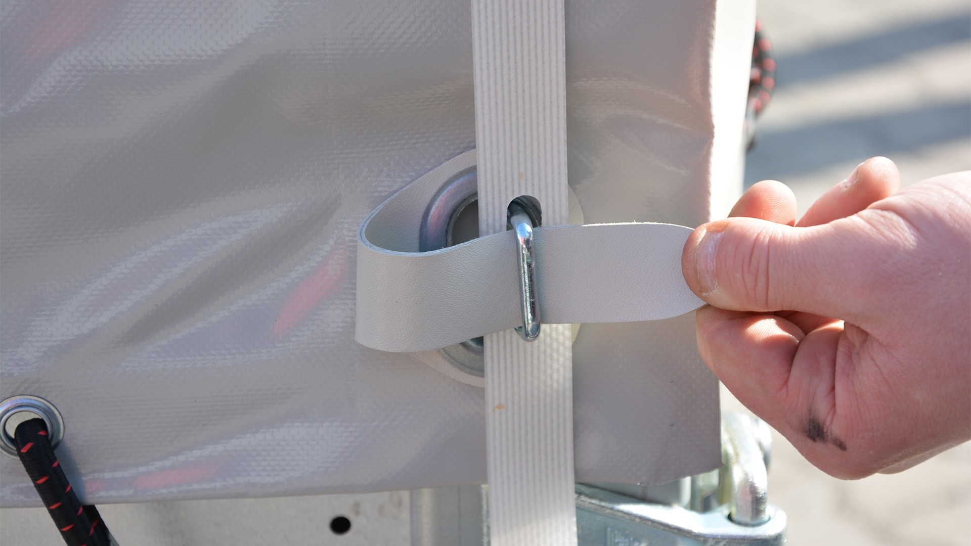 • montierte Einhängeknöpfe zur Fixierung von Planen und Netzen