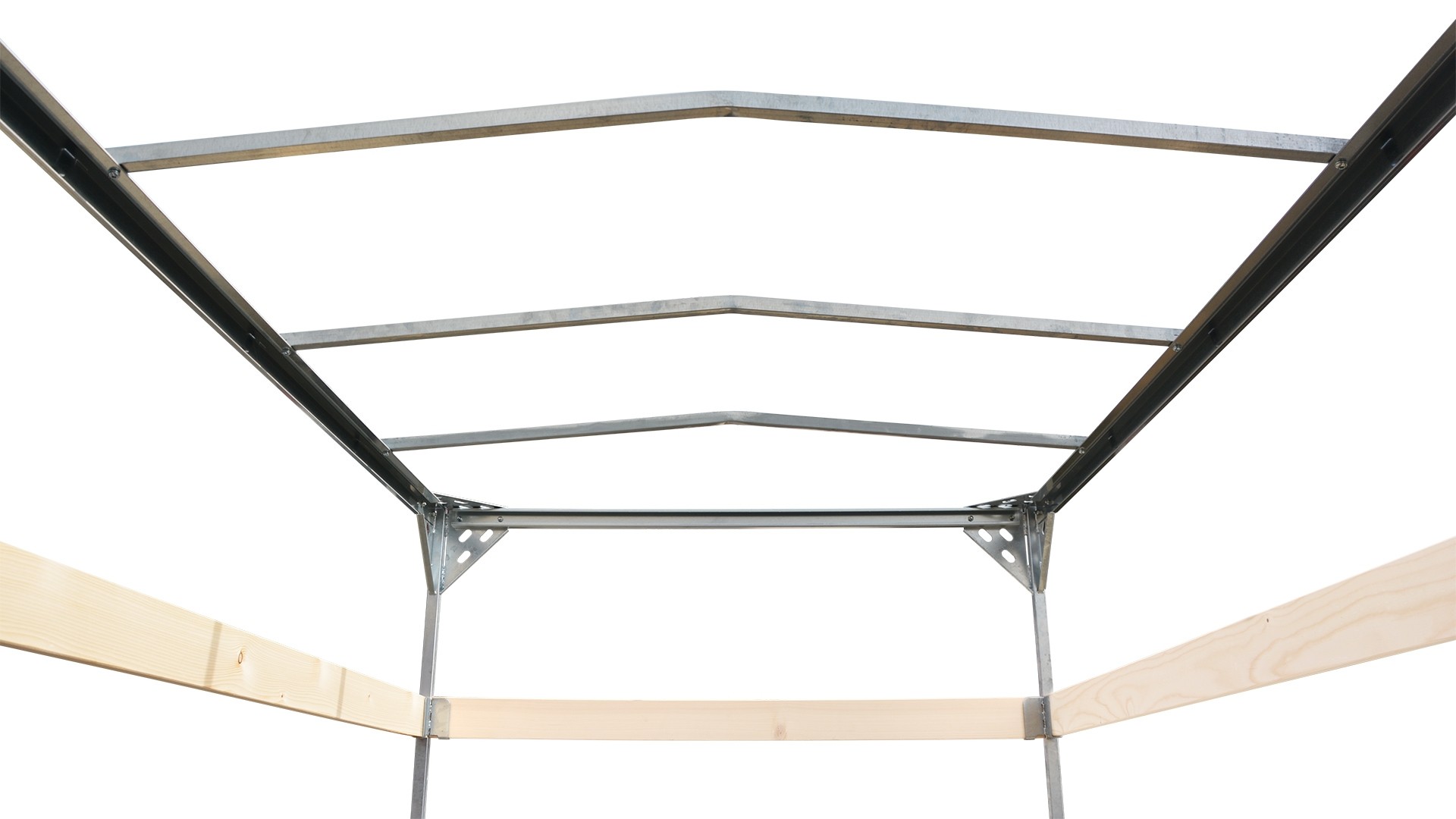 Der geschweißte und feuerverzinkte Hochspriegel ist mit einem leichten Spitzdach versehen, so dass das Wasser gut ablaufen kann.