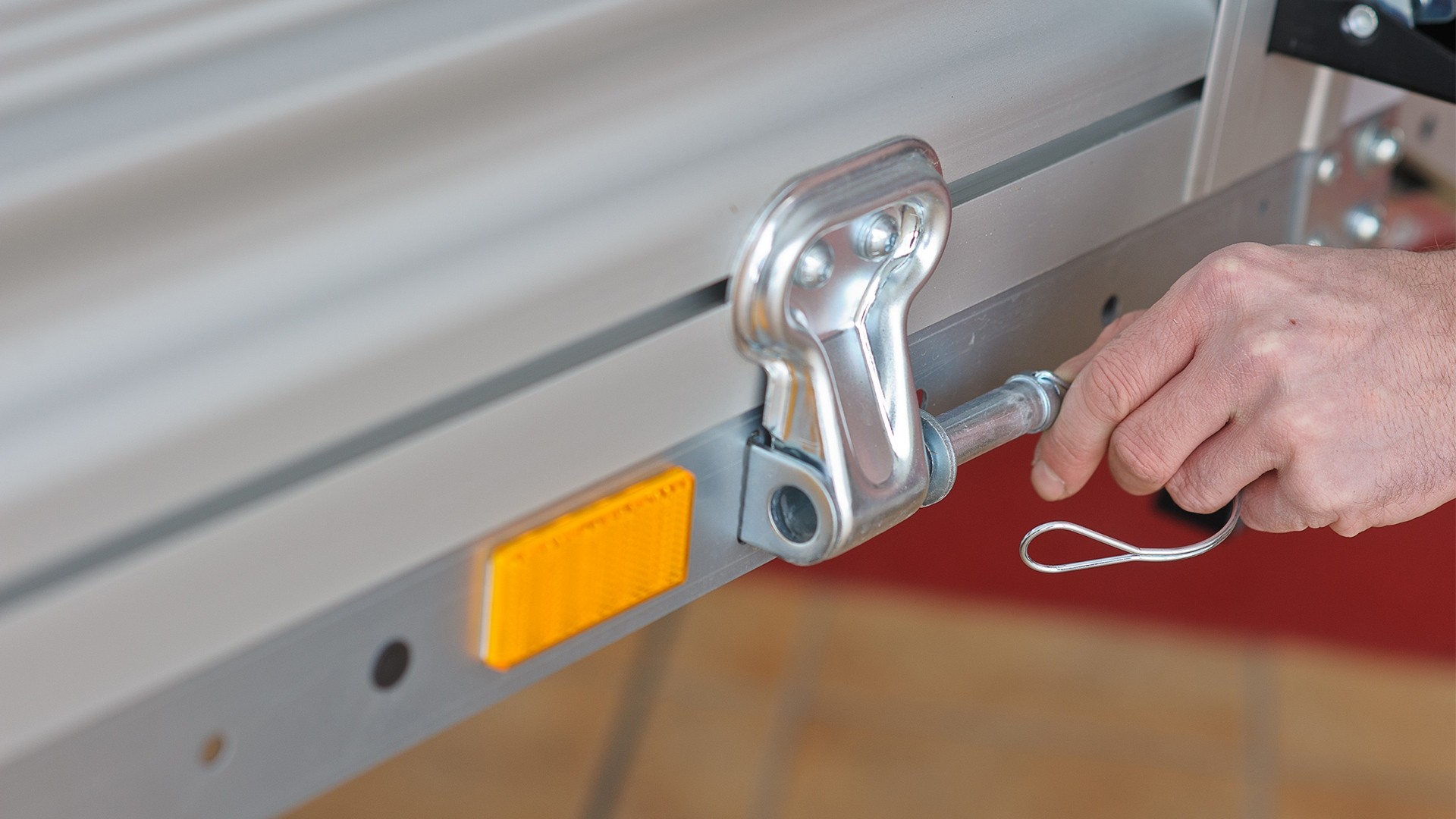 Bewegliche Teile sind besonderem Verschleiß ausgesetzt. Daher achten wir ganz besonders auf höchste Stabilität und Langlebigkeit. Alle SySTEMA® Anhänger mit Bordwänden sind mit robusten Scharnierbändern und professionellen Winkelhebelverschlüssen aus Stahlguss ausgestattet.