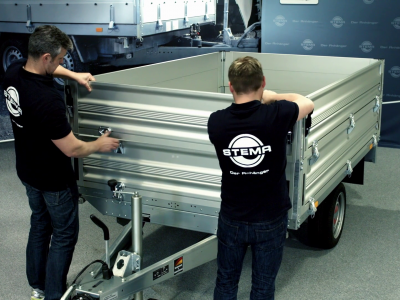 Das Profil der STEMA-Alu Bordwand ist patentiert, denn es bietet die Möglichkeit, die Planenhaken direkt einzuhängen ohne extra dafür in die Wand bohren zu müssen. Außerdem ist die untere Kante so gestaltet, dass kein Schüttgut oder Sand herausrieselt.