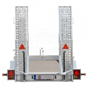 Right from the start it offers much more loading space for mini-excavators (3.60m x 1.80m LxW) and especially for the comfortable storage of the excavator shovel. There are also 2 sturdy steel drive-up ramps with pneumatic springs for stable loading and unloading.