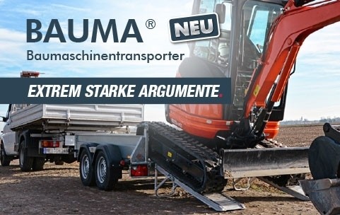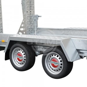 The STEMA construction machinery transporter „BAUMA“ made another developmental leap with regard to comfort and stability. With its sturdy design of welded and hot-dip galvanised support system and its additional aluminium corrugated plate floor, it is a reliable giant in the daily construction business.