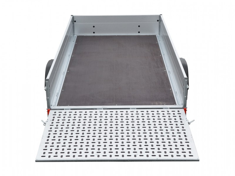 Driving up is made considerably easier by the folding rear wall. The low loading sill and the ramp angle of 11° to 17° * make loading convenient and easy. The double-leaf access ramp measures 128 x 70cm* and has a load capacity of between 500-1000 kg*. *dependent on model