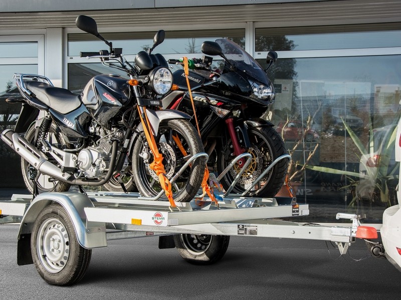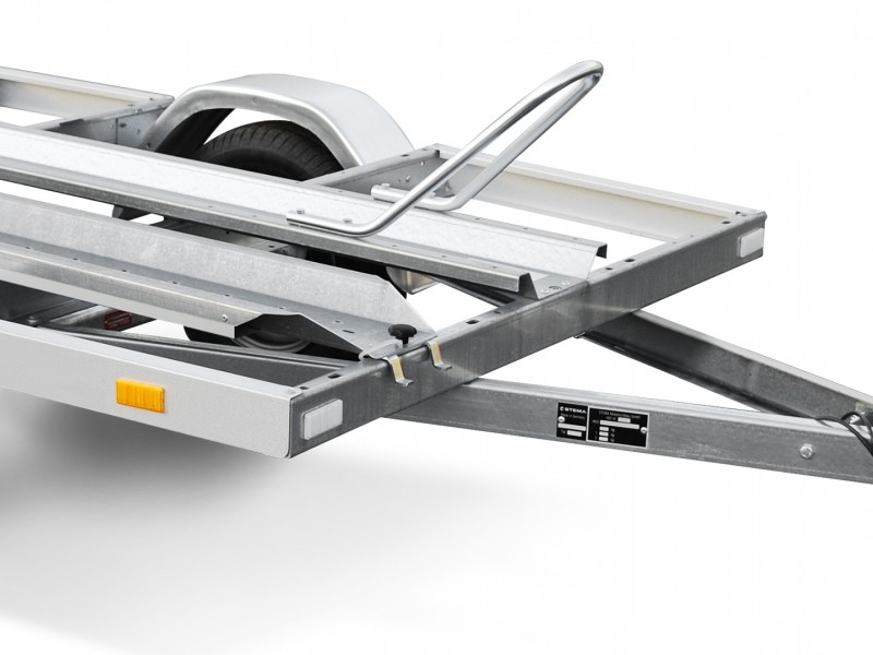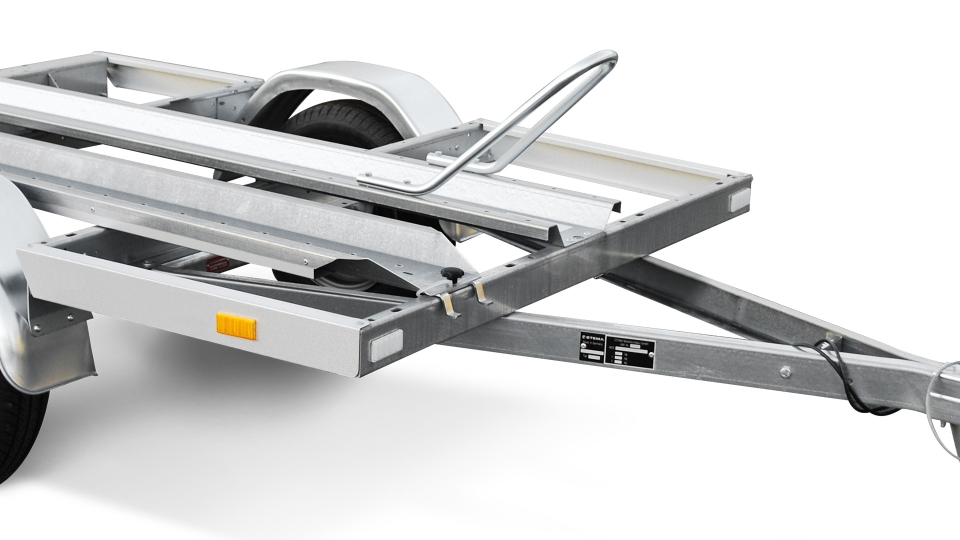 The MT Classic motorcycle transporter can transport up to 3 motorcycles. The stand rails can be mounted flexibly. Depending on the number and size of the bikes, simply mount them so that the load weight is centered. Loading is easy and convenient thanks to the access track. The track is fixed with two easy-to-use screws.