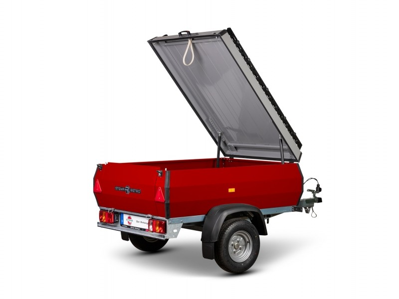 You can attach the crossbeams of the roof railing below or above the longitudinal beams, making it easy for the RETRO to adapt to your goods. When unloading bulk goods, it also helps with the STEMA tilting drawbar. The STEMA RETRO can easily be placed at an angle. Furthermore, the rear wall can not only be folded but also completely unhooked, making your life easier.