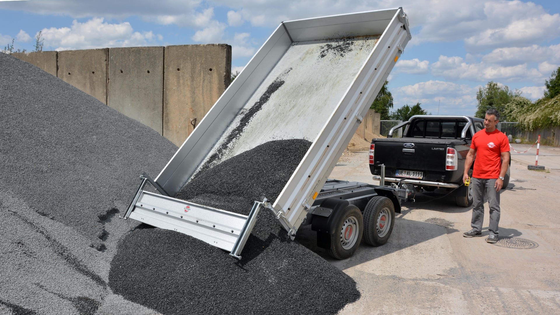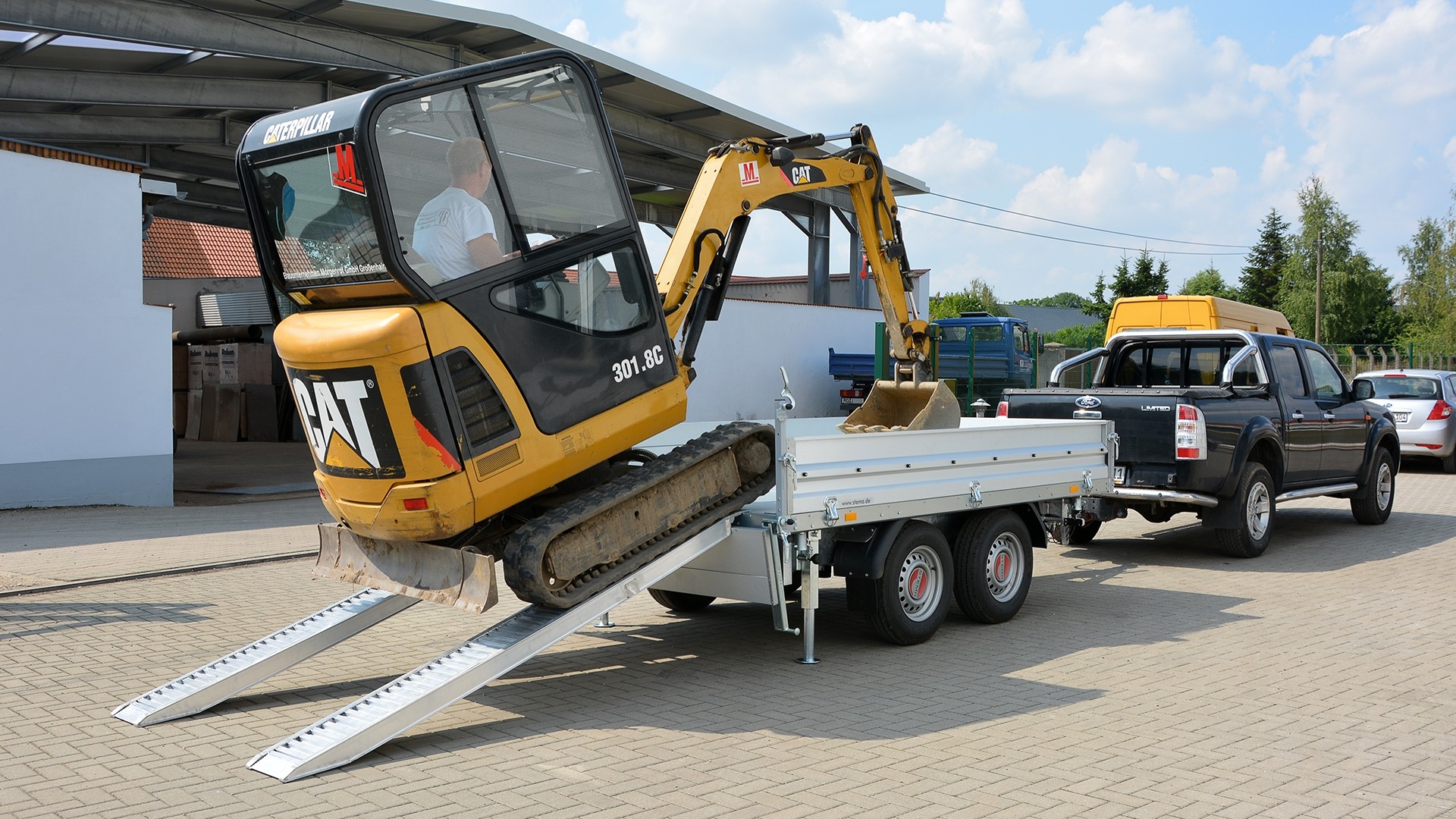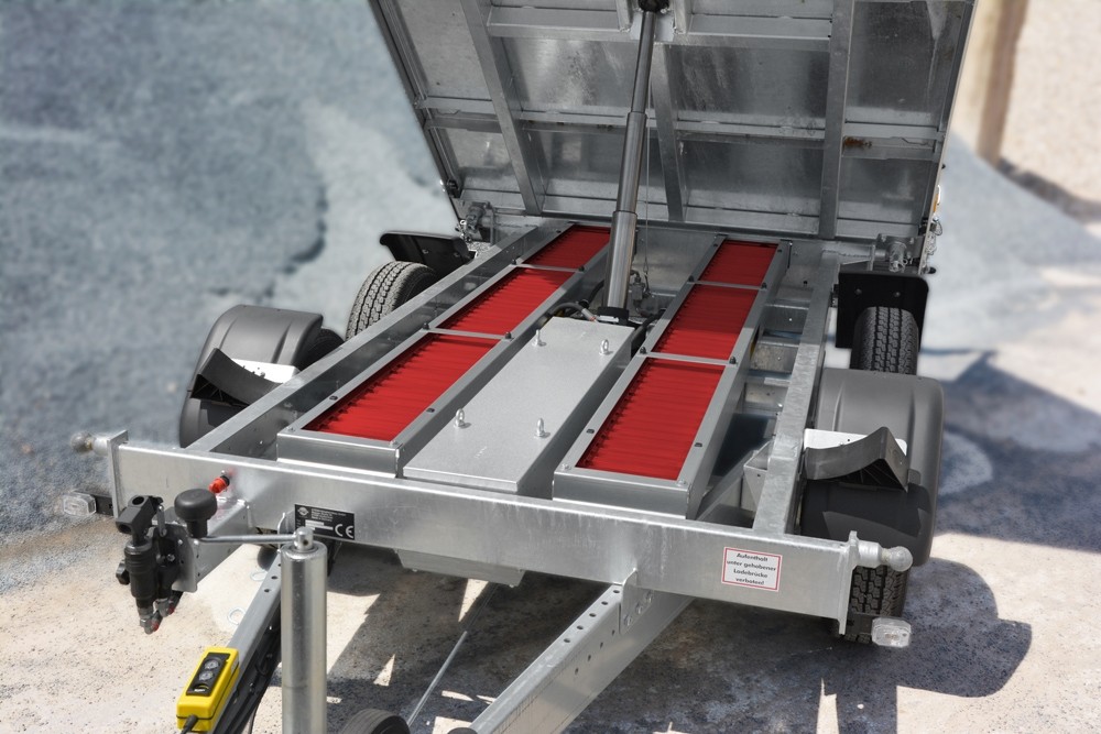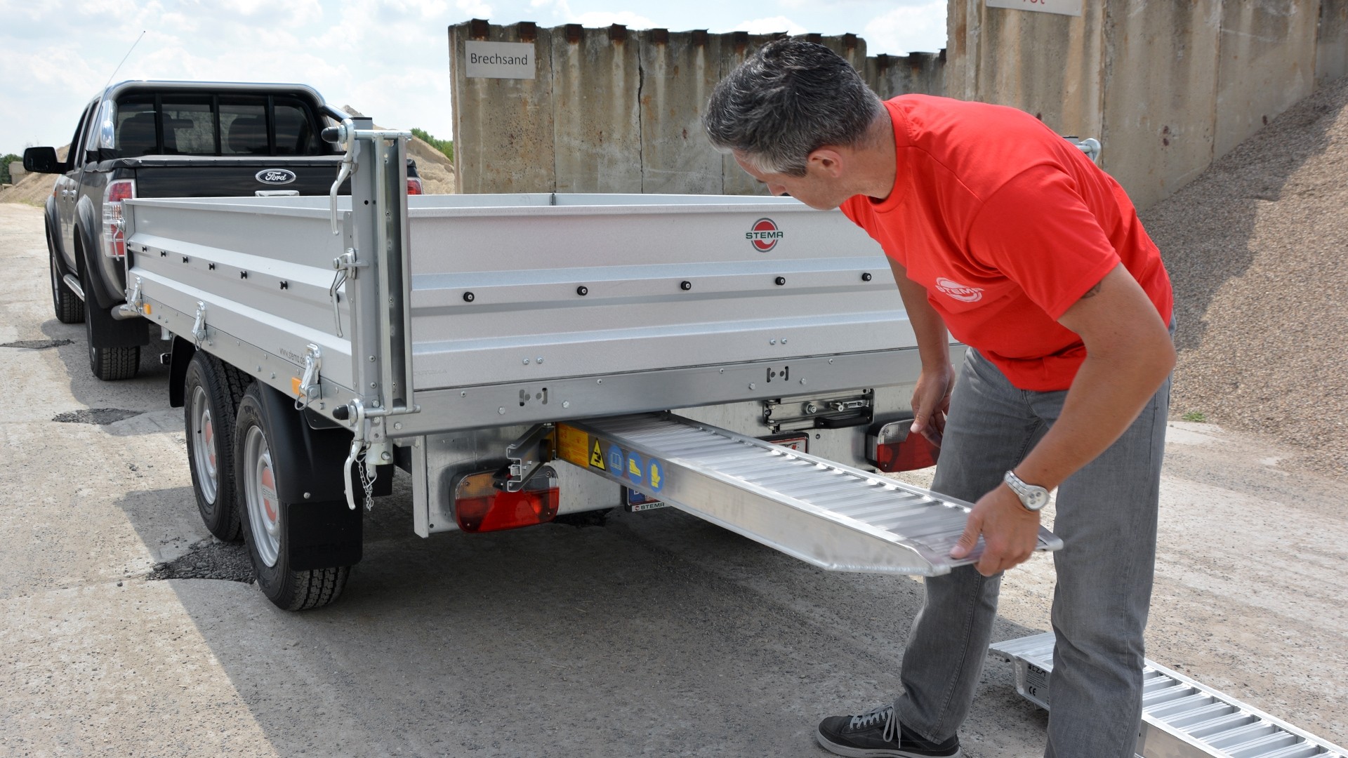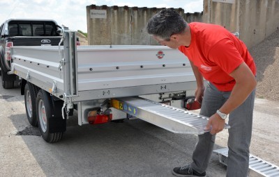 If your trailer is equipped with a hydraulic electric pump, the loading bridge can also be operated via Bluetooth ausgestattet, or with the classic remote control.