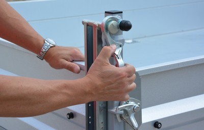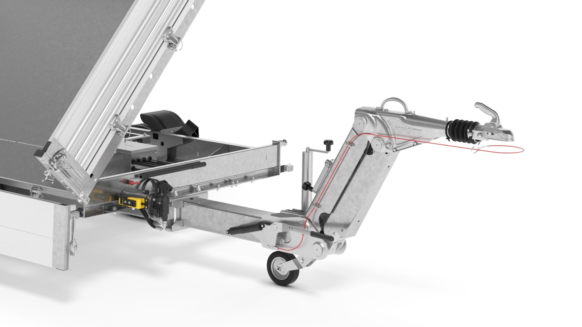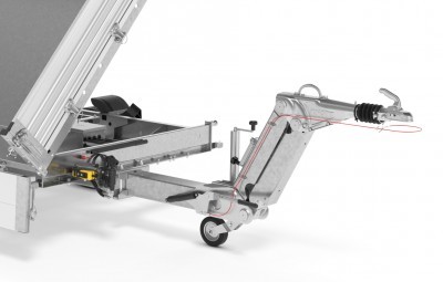 The support legs ensure the trailer’s secure position. The service support is for the secure position of the set-up tilting bridge.