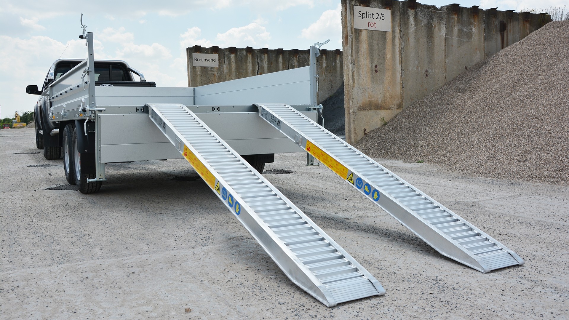 • Set of loading ramps SHDK ..-36-20.2 + ..-40-20.2 including slide rails, locking set and telescopic crank supports, ramp length 3015mm, 2700kg load capacity per pair