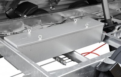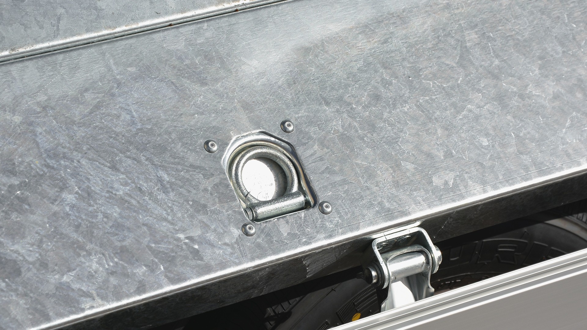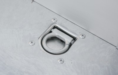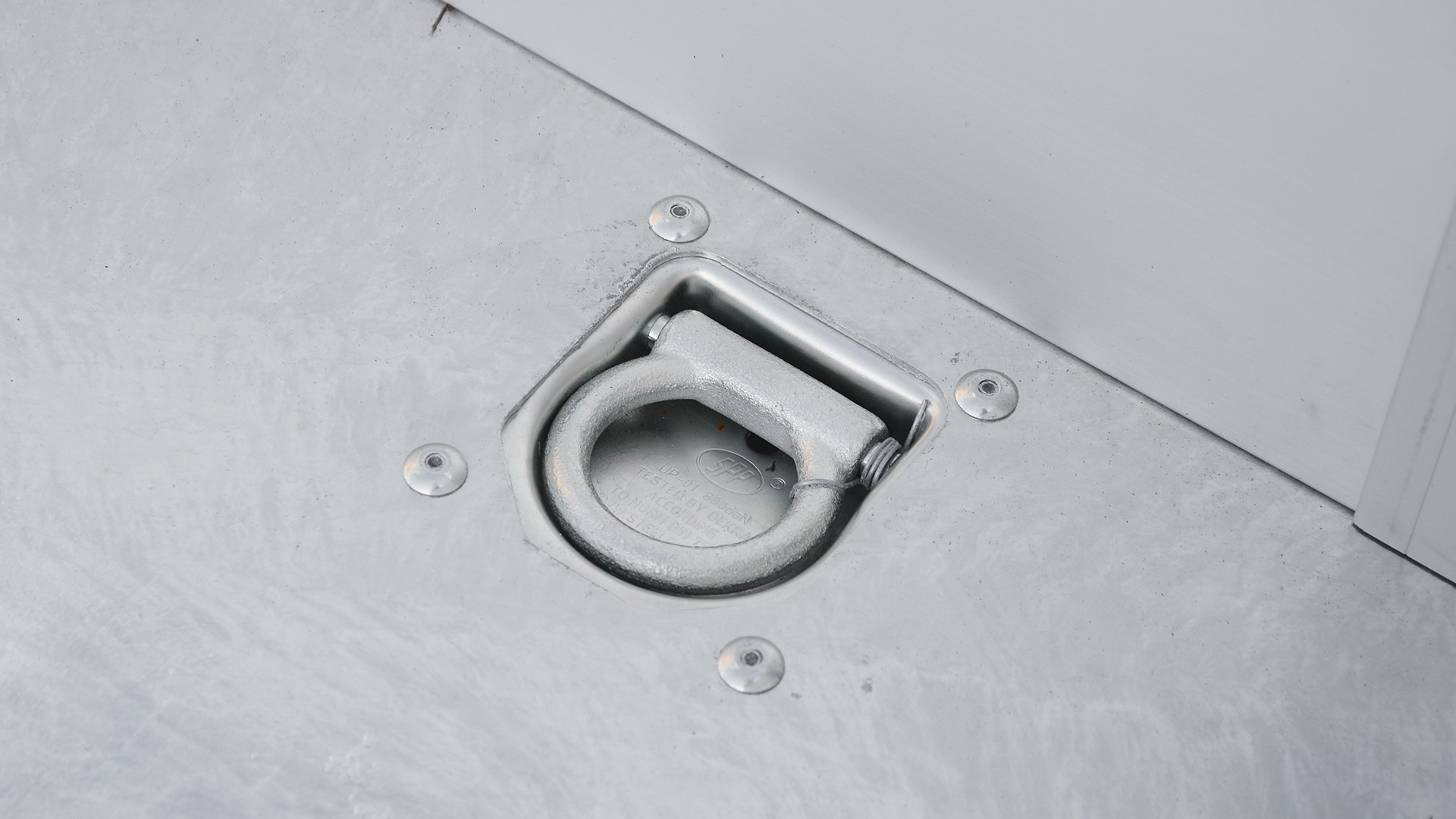 The access ramps (optional) are cleverly stored in a compartment behind the license plate holder. Eight Dekra-tested heavy-duty pull rings are retractable in the floor and directly connected with the stable subframe construction.