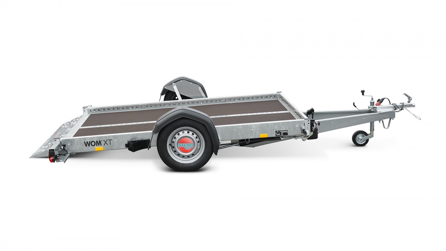 The WOM motorcycle transporter transports not only motorcycles and vehicles, its continuous stable wooden floor turns it into a multi-functional trailer. As accessories there are railings, side walls, as well as flat and high covers in many colors available in the STEMA product range.
