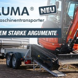 With the very low ramp angle, construction machines, tools and various materials can be loaded with ease. The transporter is available with a V-drawbar or central tube and is therefore compatible with a car or semi-truck towing vehicle.