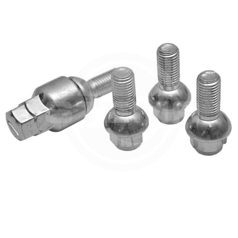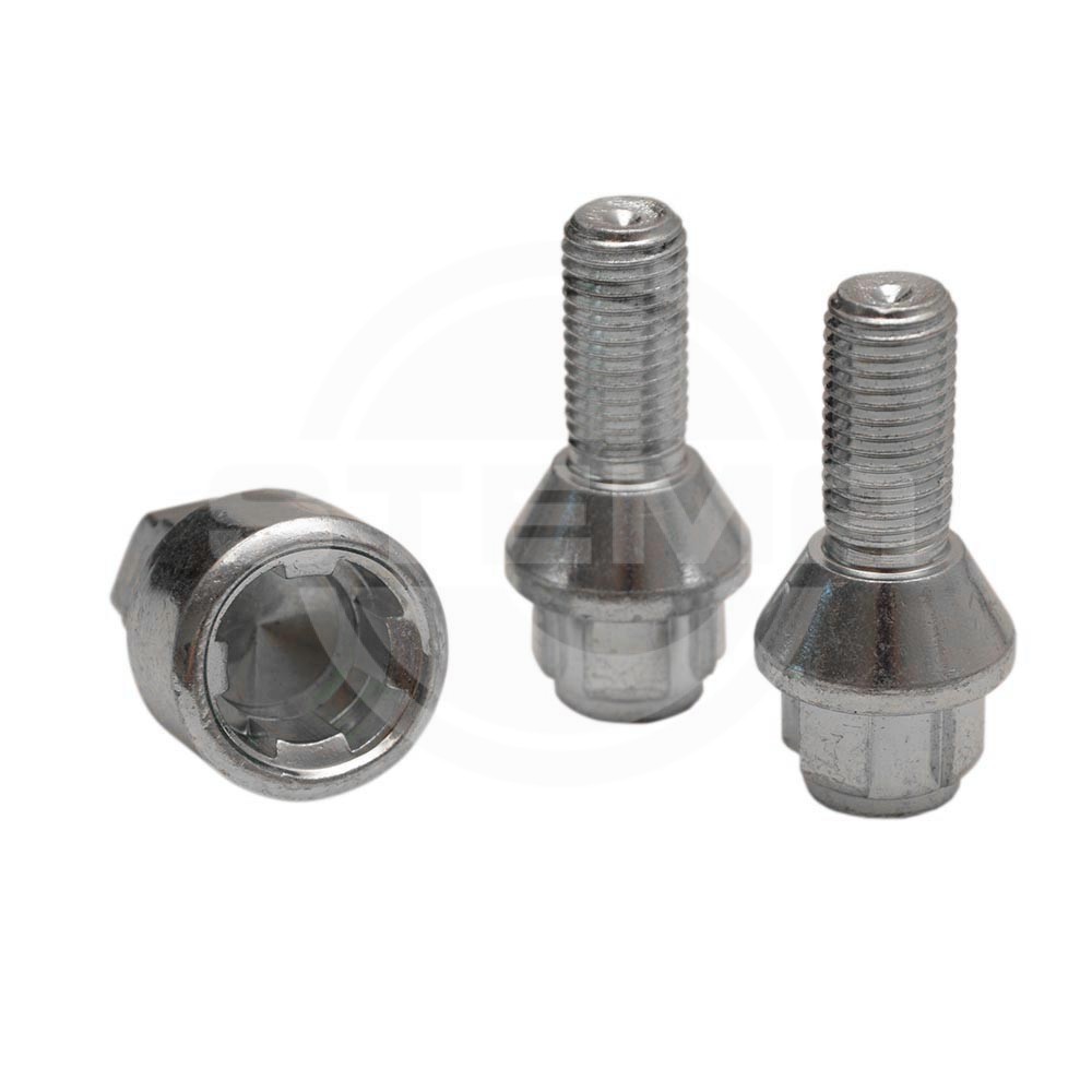 The ball collar screws with a ball diameter of 25 mm are for mounting 4-hole rims and have a thread of M12x1.5. The ball collar screws with the same thread and a ball diameter of 24 mm are used for mounting 5-hole rims.