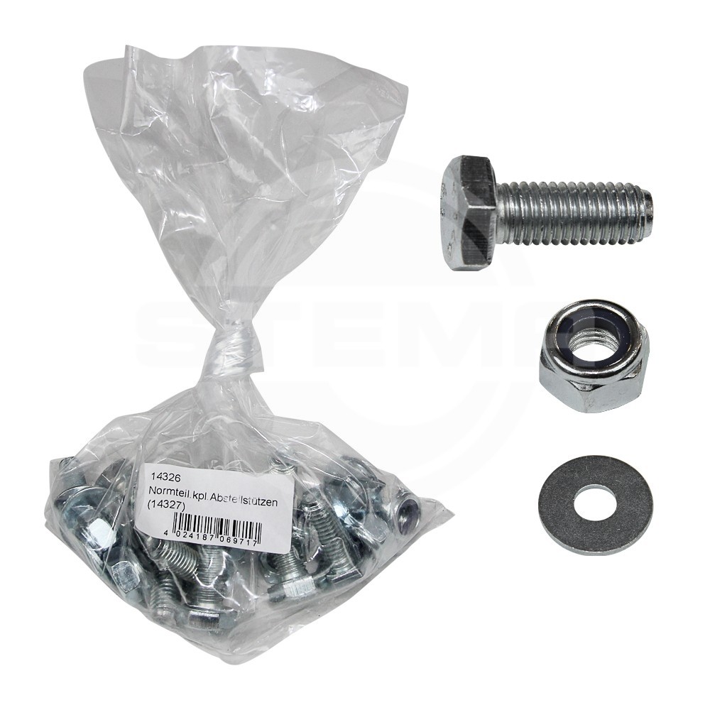The set contains all standard parts necessary for mounting the support legs on your car trailer.