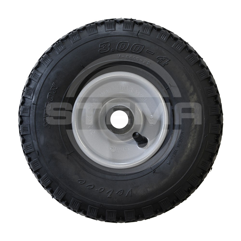 The wheel with solid rubber or pneumatic tires and steel rim serves as a replacement for your support wheel with a 20 mm axle. The load capacity is 150 kg.