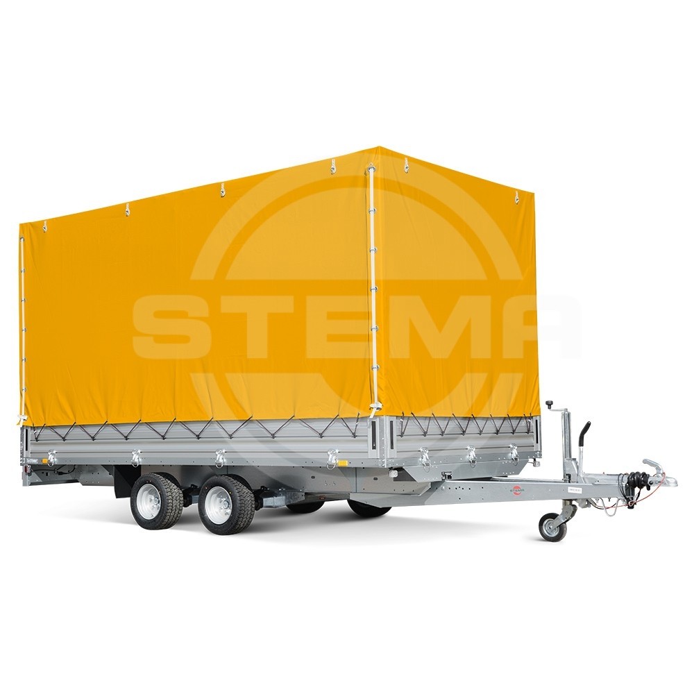 STEMA has been producing the UV-resistant weatherproof cover on location in Germany and in best quality for more than 65 years. In the area of PREMIUM , our own cover sewing room processes durable and tested tarpaulin materials from selected suppliers. You receive a long-lasting product, which can be opened on four sides thanks to the laterally riveted straps with fasteners. The cover material consists of polyester fabric with PVC-coating.