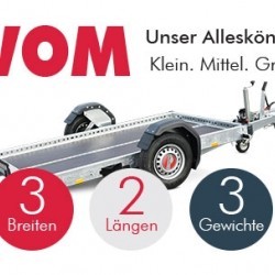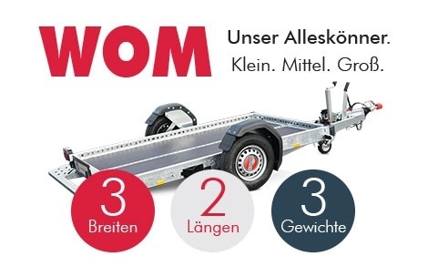 For us, the WOM’s success is reason enough to expand this trailer family. Starting now, our all-rounder is available in three widths, two lengths, and three weight classes. The season begins. Order now!