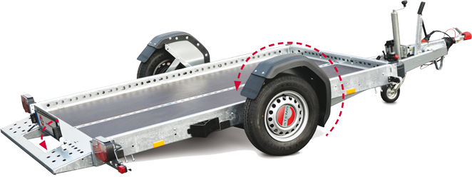 All trailers are equipped with a hot-dip galvanised frame and have a standard hand pump. As a comfort feature, we also offer the innovative electric pump.